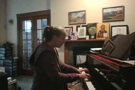 And here is this piece played all the way through, slowly, with still one section where I'm not smooth and consistent. I've just begun knitting all the parts together;…