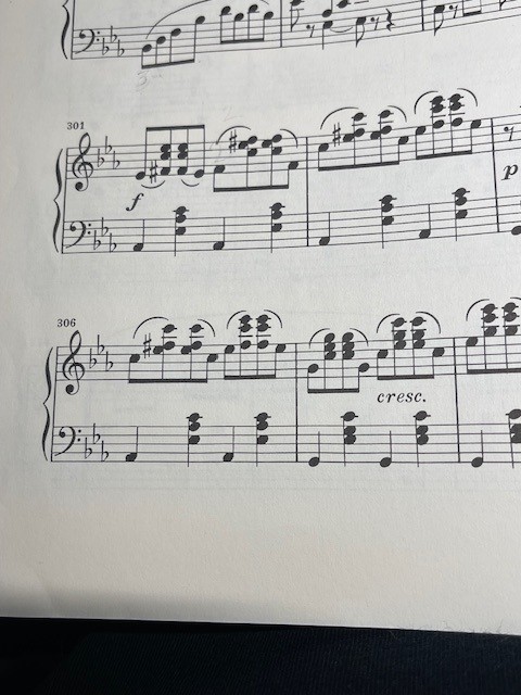 I am interested in how others are fingering the Schubert Piano Sonata in G Major D894 IV. Allegretto repeated pattern in measures 305 - 312. Specifically the single notes in the right hand. I have tried a couple already. I am giving the movement a big push to speed up the tempo. I feel a little clumsy with this pattern. I am hoping some of you play the piece up to tempo & are willing to share your wisdom! Thank you!!