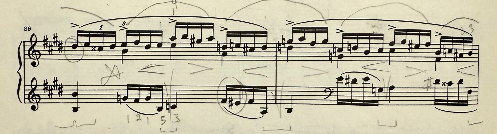 Additionally, I’m facing difficulty in controlling the tone quality during these leaps—the chords often sound too harsh or “explosive.” When I try to soften the dynamic, my tempo slows down significantly and I tend to miss notes again. I’d truly appreciate your suggestions on how to achieve a tone colour that better suits the character of this piece, while maintaining fluency and accuracy.