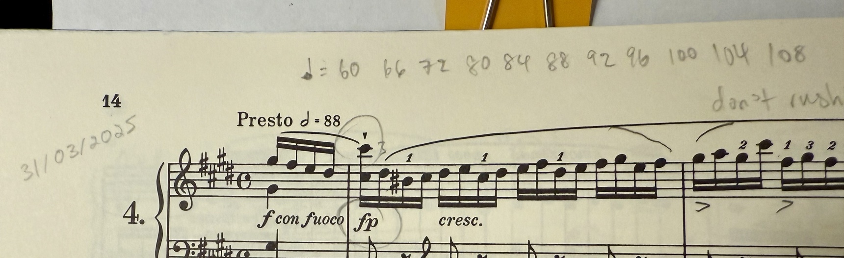 Just thought I would share a snippet of my journey working on this piece as I don't think I have ever spent this amount of time working continuously on any one piece before, and it has taken a lot of patience not to get ahead of myself. It was only after week 6 that my teacher allowed me to start working on increasing the tempo and since then it has been a long process climbing up that mountain. It still needs a couple more months before I feel at ease playing at the speed of my submitted recording (~112bpm which is faster than my current top metronome practice speed at 108bpm). Good thing that I'm not bored working on it yet! 😆